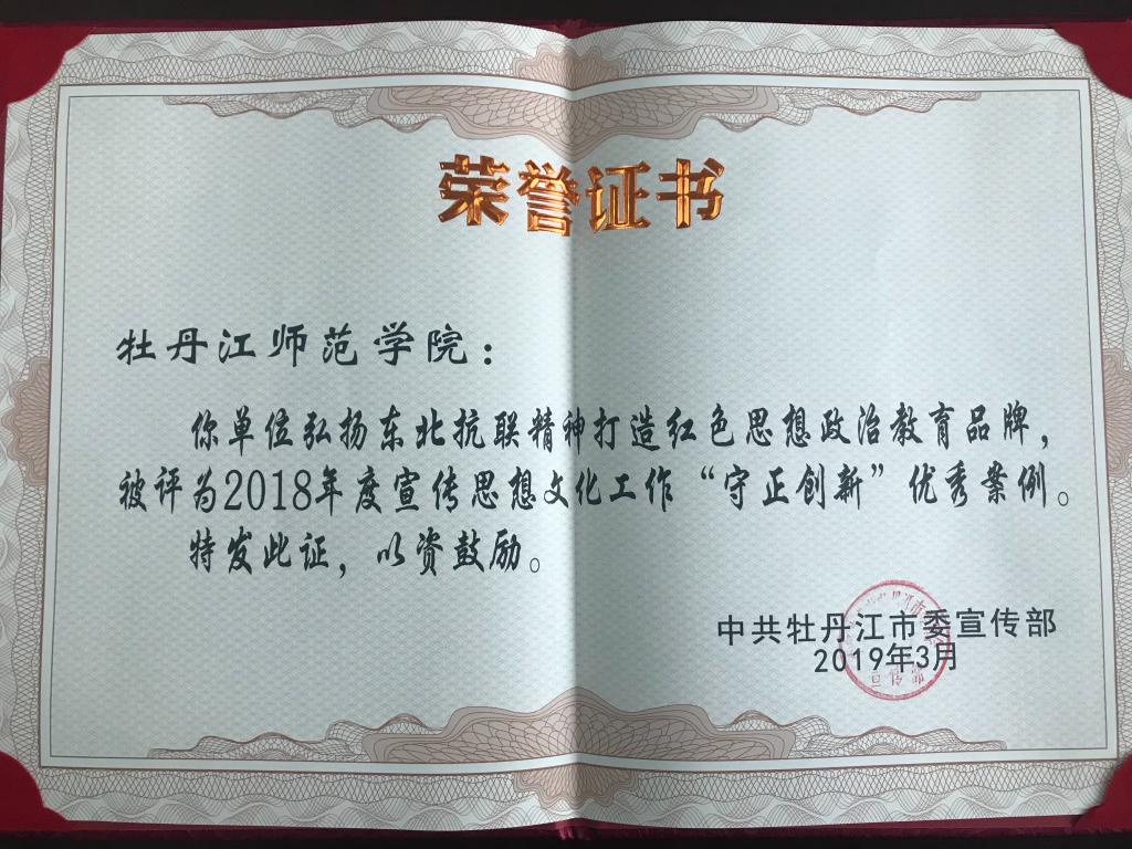 3月14日,全市宣传思想文化工作会议在江南党政会议中心举行。会上,我校典型案例“开云(中国) 弘扬东北抗联精神打造红色思想政治教育品牌”被市委宣传部评为“2018年全市宣传思想文化工作‘守正创新’优秀案例”。