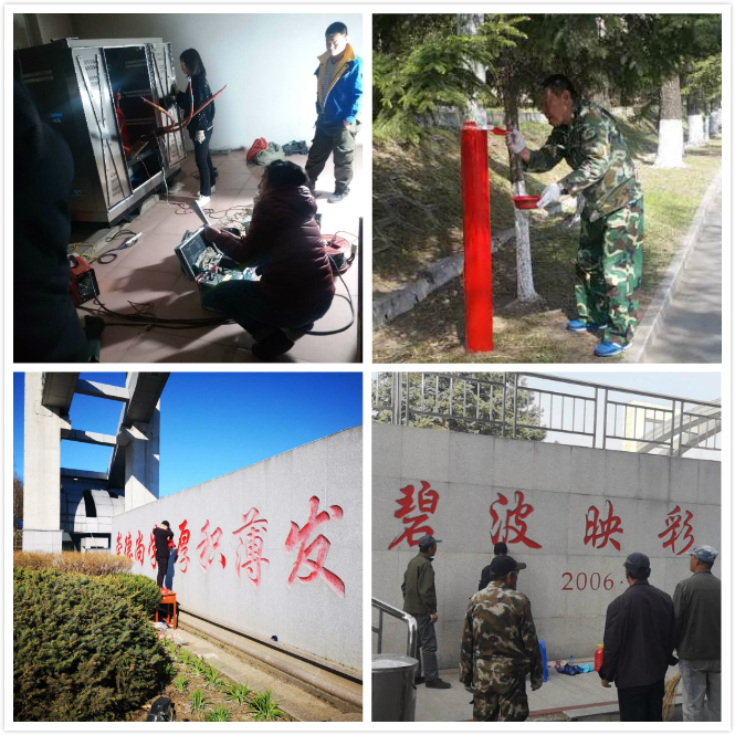 后勤管理与服务处党总支书记张辉说:“学校党政领导非常重视后勤维修工作,‘五·一’前,张冬副校长带领后勤有关人员,对全校范围内水、电、暖、土建等方面的安全隐患进行了系统排查,列出了重点工作内容,制定了专项维修计划。‘五·一’期间,校长梁中贤,副校长张冬多次前往施工一线,关心施工质量,对维修工作提出了指导性意见,对放假期间依然坚守岗位的职工表达了节日的问候和衷心的感谢。后勤管理与服务处本着节省资金、提高效率、美化环境的宗旨,整体无休、全员出动,修整了校园道路,排查维修了建筑外墙的安全隐患,更换了综合楼变压器,迁移了综合楼发电机,清扫了卫生死角,从教学楼到学生公寓,从校园内部到校园周边,进行了全面细致地维修和清扫,从细节出发,保障了校园环境和安全,全力为教学、科研、师生员工服好务。