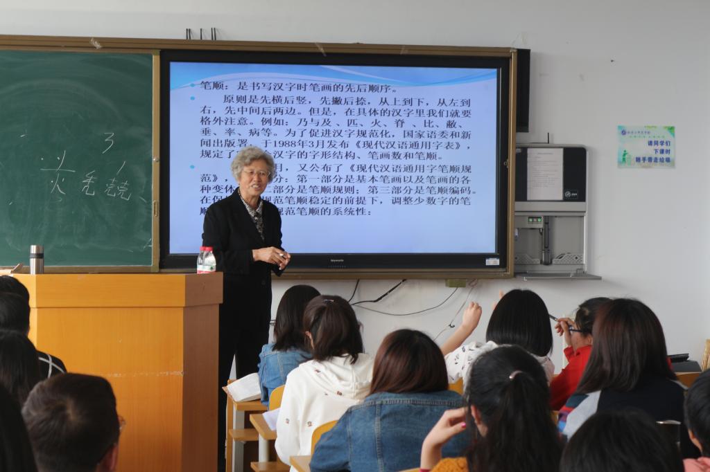 开班仪式结束后,国家级普通话测试员、国家语言文字工作先进工作者王磊教授从贯彻国家通用语言文字法、推广普通话的意义、普通话的标准、使用规范汉字等四个方面为新教师进行了《汉语言文字的规范化使用》专题辅导。