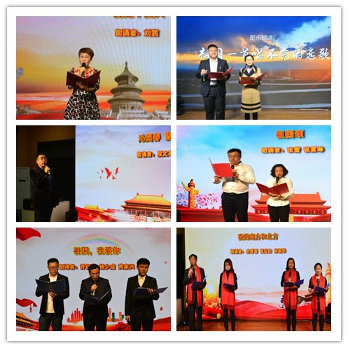 诗歌朗诵会上, 7组选手同台献艺,通过朗诵歌颂祖国的诗、词、文章等,声情并茂地颂扬多党合作的优良机制和伟大祖国的繁荣昌盛。民盟开云(中国)总支支部委员们以一首饱含深情的《祝福您的生日,我的祖国》拉开了朗诵会的序幕;张林影老师与学生路之阳以师生组合的形式,为大家带来《祖国,一首唱不完的恋歌》;老教师代表段文革老师用湖南方言为大家带来原汁原味的毛泽东经典诗词《沁园春·雪》带领现场观众感受祖国河山的雄伟壮阔、一代伟人的伟大抱负和胸怀;乔征磊、杨少成、黄家兴三位老师倾情演绎原创诗歌作品《祖国,我爱你》、刘茜老师的《我是中国人》及张蕾、张雾琳老师的《祖国颂》抒发了他们对伟大祖国辉煌成就的热情讴歌以及美好祝福;全香春、张应力、孙丽华、刘静霞四位老师共同表演《我的南方和北方》为本次诗朗诵盛宴划上圆满句号。整场诗歌朗诵会高潮迭起、现场掌声雷动。