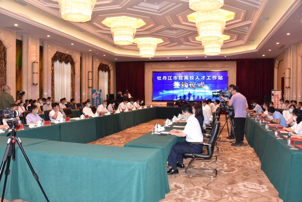 市长王文力在签约仪式上致辞。他表示,高校与牡丹江共建人才工作站签约,在牡丹江历史上是第一次,是牡丹江经济社会发展的大事好事喜事,也是深入贯彻落实习近平总书记关于推动东北振兴重要讲话重要指示批示精神和省委“科教强省”决策部署,实现科技兴市、人才强市的重要举措和生动实践。东北农业大学校长包军代表高校致辞;哈尔滨工程大学就业指导服务中心主任徐宝贵代表高校与牡丹江市委组织部常务副部长于慈森签订《牡丹江市驻高校人才工作站合作协议》。