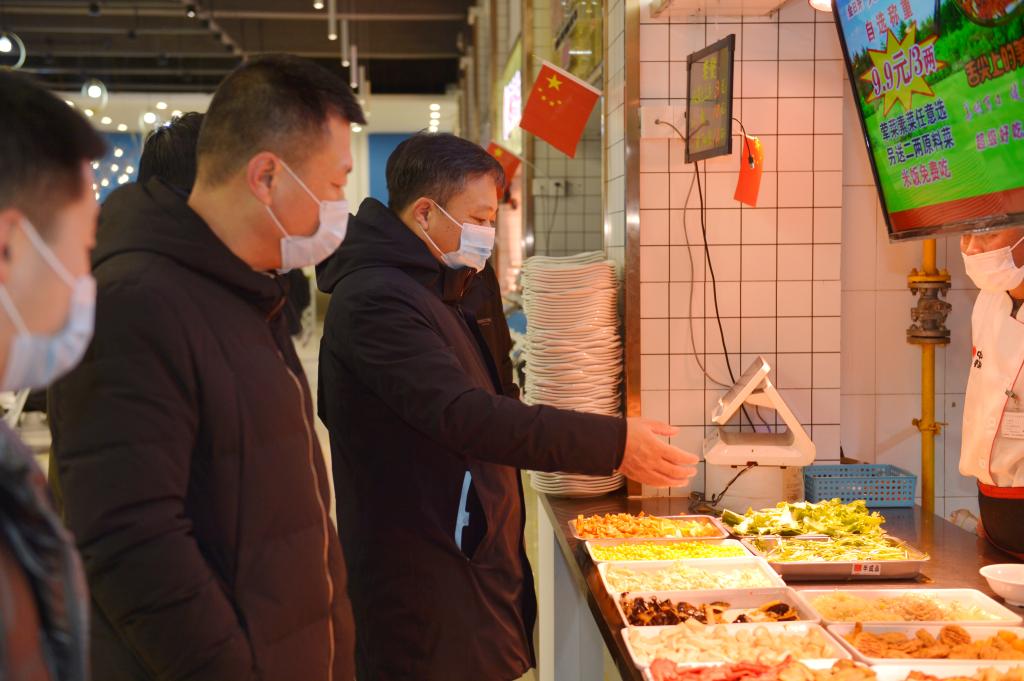 在学苑超市、学生食堂,王志浩书记详细了解了测温及消毒设备使用、消毒消杀及食品供应情况,要求相关工作人员要加强食品安全管理,严格遵守操作规范,严把食品采购、贮存、加工等关键环节,加强冷链食品卫生防疫,做到不存遗漏、不留死角;加强对学生关心关爱,在保证质量的同时必须稳定价格,对困难学生提供切实可行的帮扶措施,确保每名学生都能吃饱吃好。