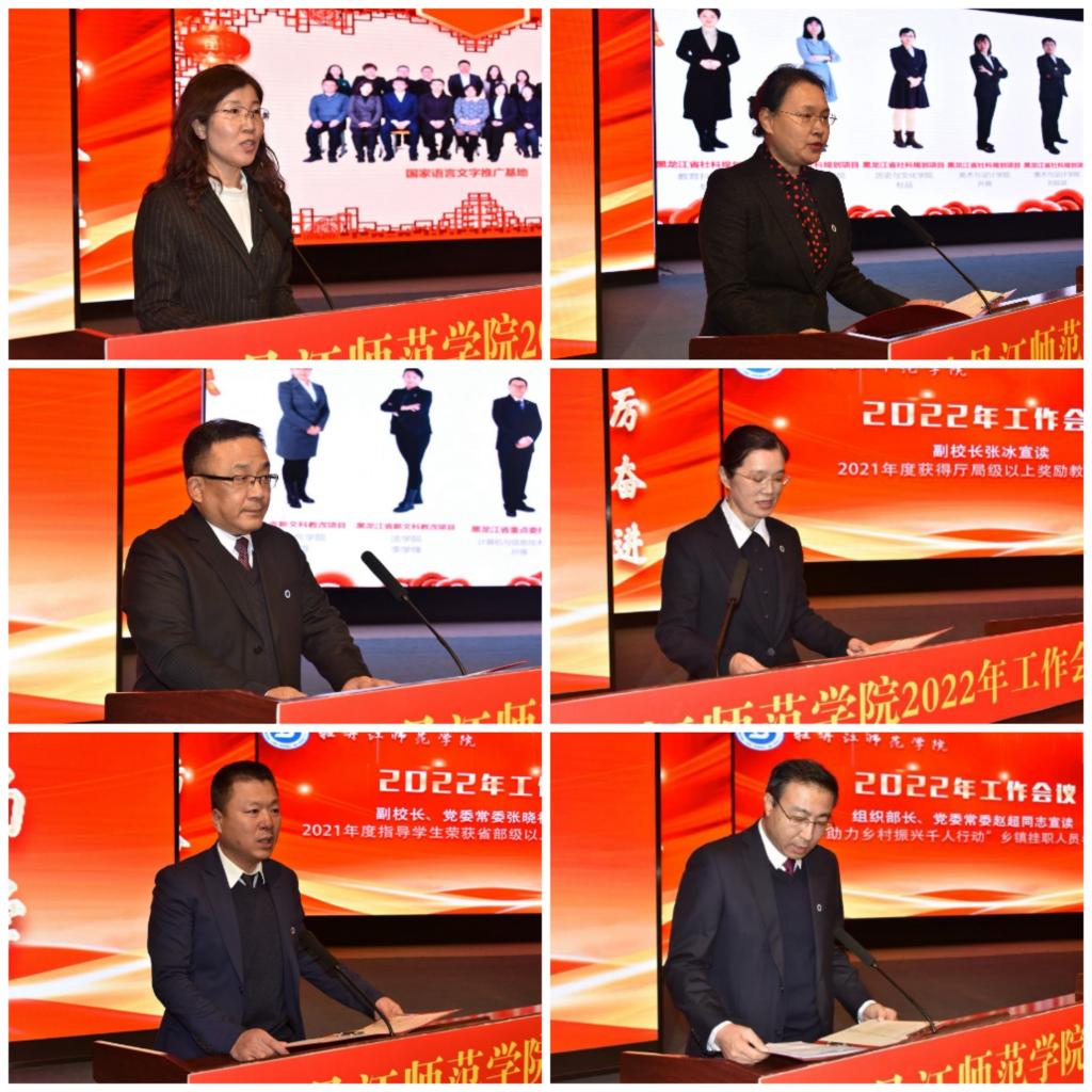 李春江院长指出,2022年学校全局重点工作任务有:加强党建和宣传思想工作,为学校发展提供政治保障。筹备学校第七次党代会,全面凝聚学校发展共识;力争获批国家师范教育协同提质计划支持学校;专业建设争取获批国家级一流专业建设点2-3个,做好省级应用师范专业集群工作,落实立德树人根本任务,加大经费投入,鼓励学生参加学科竞赛,努力培养卓越人才,汇集资源,打造学科特色优势,催生学科新的增长点。在服务地方上,力争获批省级首批现代产业学院。全力迎接好第二轮教育教学审核评估。聚焦第五轮学科评估和全国专硕水平评估结果,强化体制建设,高质量完成7个授权点的年度合格评估报告,启动4个学位授权点的专项评估。获得共青团省级荣誉,力争国家级荣誉。加大招生宣传,保证生源质量。争创省级高校心理健康教育示范中心。加大四所免费培训班的宣传引导,优化课程设置、加强师资配备,推进职业技能培训,普及教师资格证免试范围。完成网上服务大厅建设,推进IPV6的基础网络设施规模部署和应用升级。扩大高等学历继续教育规模,增设三个招生专业,今年继续教育学院招生将达到1200人以上。组织完成学前教师培训项目,完成少数民族地区语言文字的能力培训,推进乡村教师专业发展平台建设,积极争取新的国培省培计划项目。加强师生双向交流,推进交换生奖学金、短期游学、研学等项目的合作,积极探索开展线上交流活动。积极推进与俄罗斯和白俄罗斯等国家的学校建立合作关系,填补我校空白。