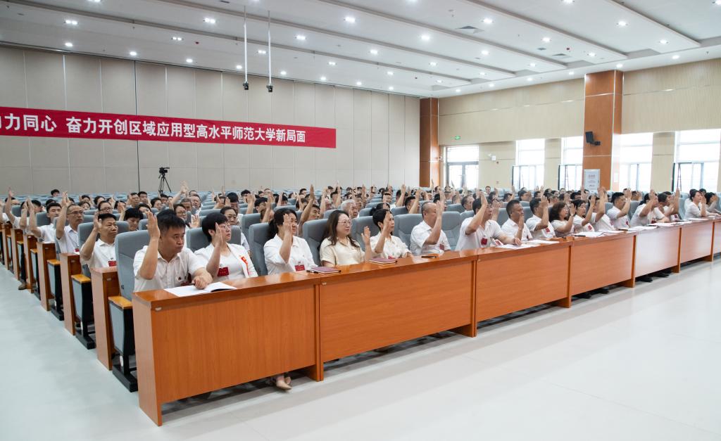 大会号召,全校各级党组织、广大党员和师生员工要高举中国特色社会主义伟大旗帜,更加紧密地团结在以习近平同志为核心的党中央周围,以永不懈怠的精神状态和一往无前的奋斗姿态,全面开启区域应用型高水平师范大学建设的新征程!