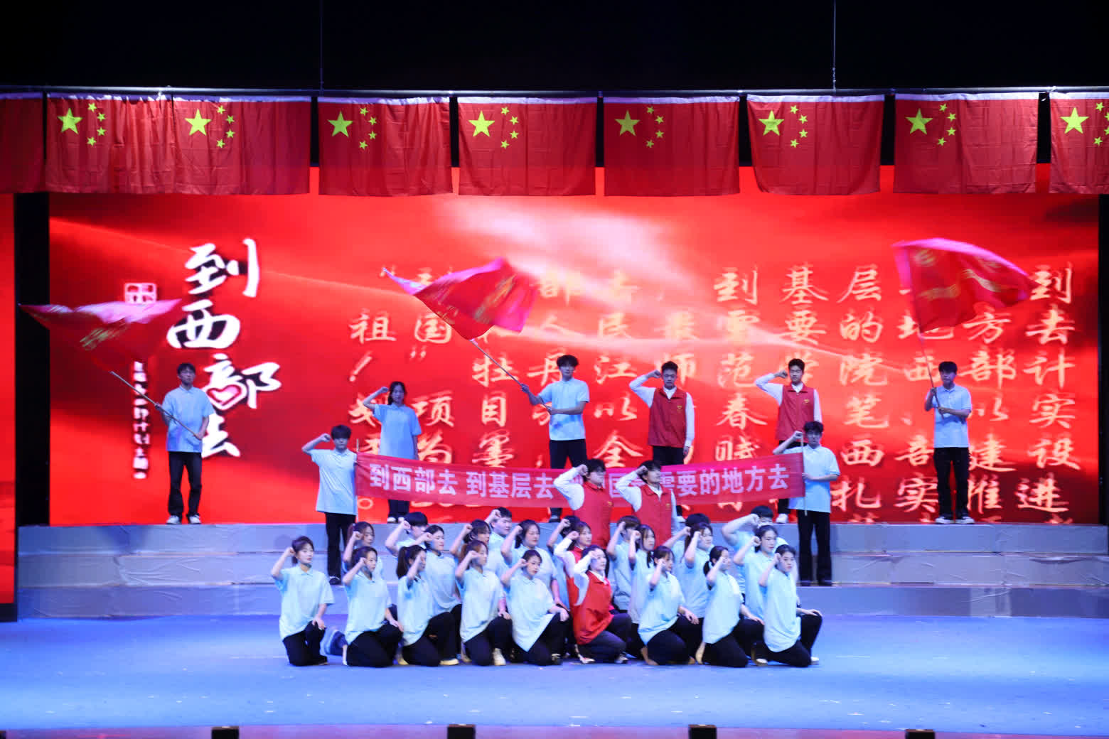 整场活动以文艺为载体,以信仰为内核,呈现了一堂别开生面的思政大课。演出在气势磅礴的合唱《保卫黄河》中拉开序幕,雄浑的歌声如黄河奔涌,唱响了穿越时空的青春强音。随后,舞蹈《觉醒年代》以充满张力的肢体语言,再现了追求真理、燃烧理想的澎湃岁月。诗朗诵《青春向党挺膺担当》则发出了新时代青年将个人理想融入国家伟业的铮铮誓言。蒙古族舞蹈《英雄赞歌》舞姿豪迈,诠释了草原儿女的英勇赤诚。情景歌舞《到西部去》深情讲述了学子投身西部建设的奉献故事,并特别邀请四名2025届西部计划志愿者登台,分享服务西部的初心与成长,鼓励学弟学妹们将青春绽放在祖国最需要的地方,表达了他们扎根基层、奉献青春的坚定信念。原创音乐剧《热热的山 热热的水》将气氛推向高潮,生动再现了东北抗联浴血奋战的壮丽篇章。