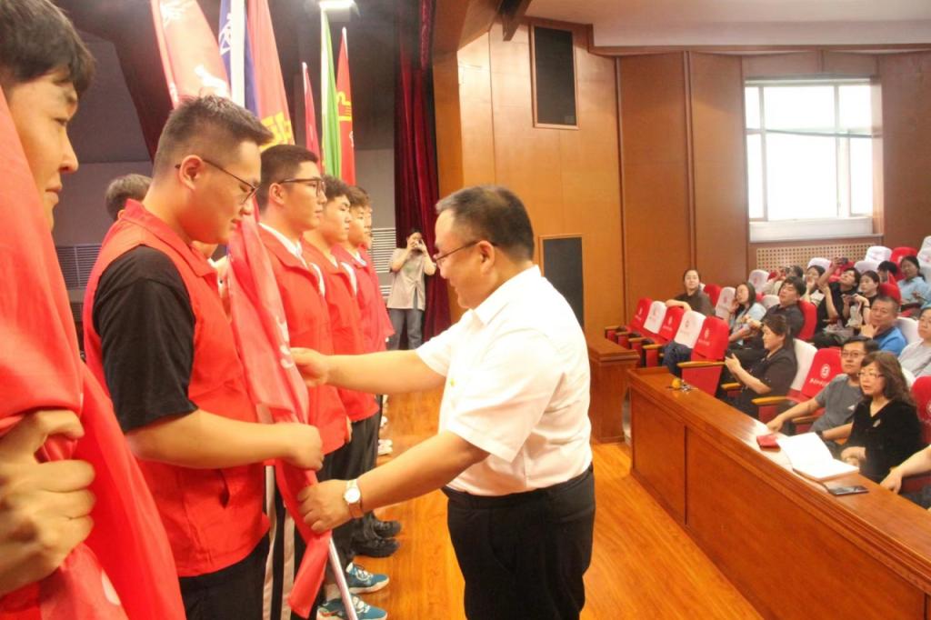 仪式最后,党委副书记张燕梁对即将投身于暑期社会实践的全体师生表达亲切的问候和崇高的敬意,同时,他对志愿者们提出了希望和要求,一是要坚定理想信念,筑牢信仰之基。将个人成长与服务社会、国家发展、民族复兴伟业相结合;二是要勇于担当作为,展现牡师青年风采。发挥专业特长和自身优势,为乡村振兴助力。三是要注重实践创新,提升能力素质。将创新思维与实际问题相结合,要虚心学习不断丰富自己的阅历和见识。四是要确保安全有序,确保活动质量。在社会实践过程中,要严格遵守纪律要求,听从团队安排,不能单独离队,确保活动安全有序进行。