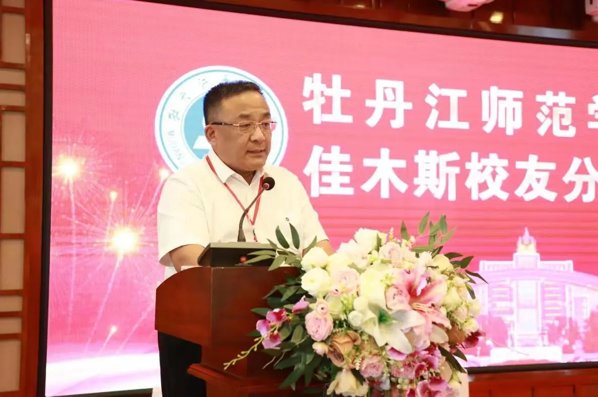 佳木斯校友分会新一届会长孙文生在会上讲话。他表示,新一届校友分会将牢记“崇德尚学、厚积薄发”的校训,弘扬母校“大荒地”精神,广泛联络和凝聚校友,为母校发展作出贡献;积极为母校与政府、企业、社会各界之间的沟通和联系牵线搭桥,促进交流与合作,发挥校友的资源优势,为国家经济建设和社会发展发挥积极推动作用。