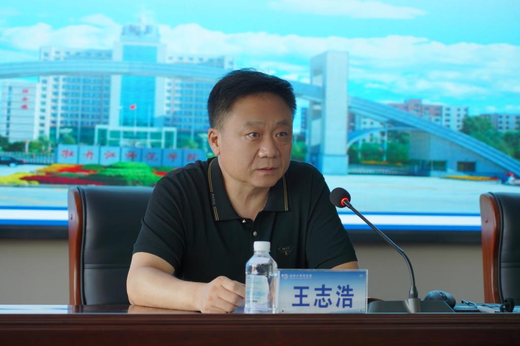 党委书记王志浩在会上讲话。王志浩书记指出,当前,学校已经迈入跨越式发展的新阶段,全校领导干部要抢抓宝贵的“窗口期”,牢牢把握高质量发展的首要任务,坚定发展信念,保持强劲发展态势,改革攻坚、高位谋划、高标推进工作。