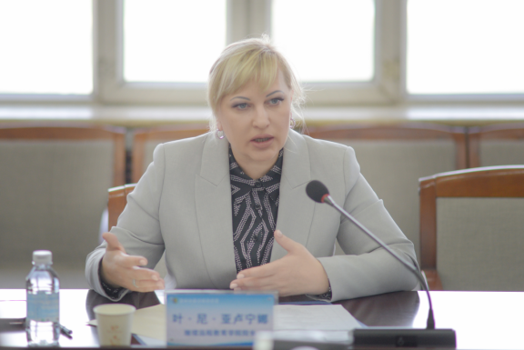 叶·尼·亚卢宁娜院长回顾了两年来双方在法学专业“2+2”本科教育校际联合培养项目的人才培养方案制定、教学团队合作、法学专业实践和学生管理等方面反复论证和协商的历程,对本次项目签约表示祝贺,高度赞扬我校在人才培养、学术交流、教育国际合作方面取得的新成效。她期待以此次签约为契机,不断推动两校在教学、科研、师生交流等领域更深层次的合作,取得更多高层次成果。