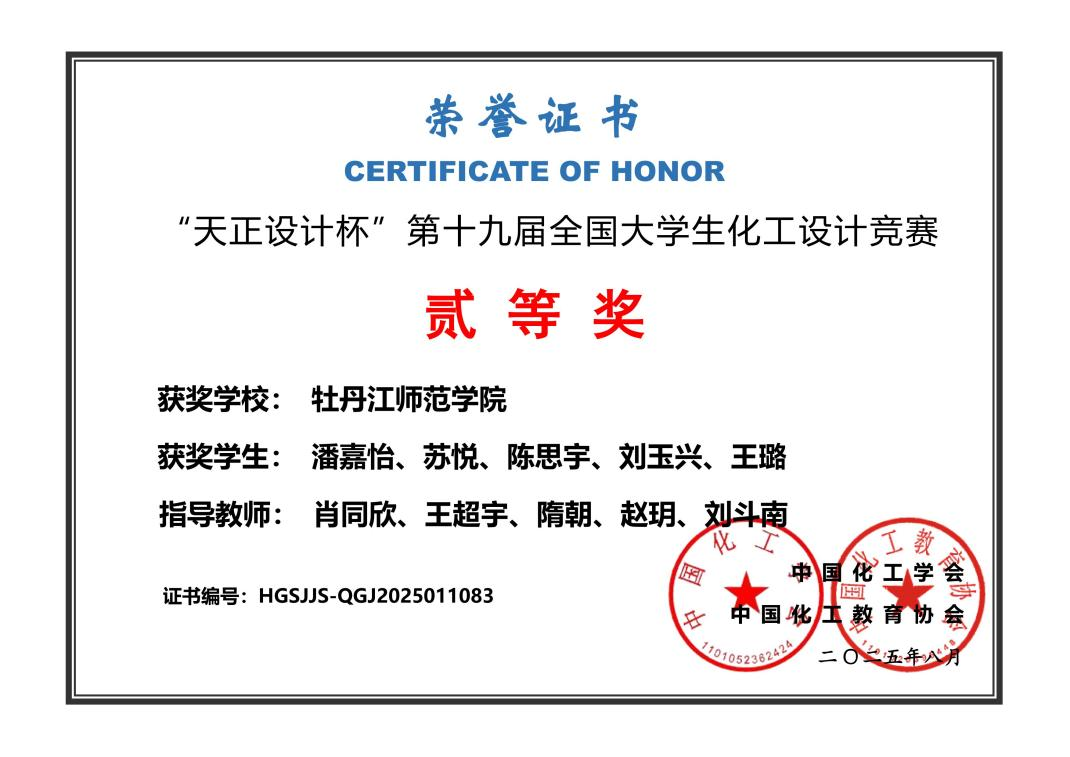 近日,由中国化工学会、中国化工教育协会主办的2025年第十九届全国大学生化工设计竞赛圆满落下帷幕。经过激烈角逐,最终我校荣获全国赛二等奖1项、东北赛区一等奖1项。