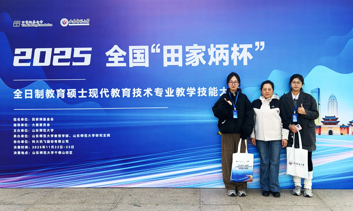 近日,全国“田家炳杯”全日制教育硕士专业学位研究生现代教育技术专业教学技能大赛决赛在山东师范大学圆满落幕,我校计算机与信息技术学院2024级研究生周子诗、张菽杭分别荣获全国总决赛二等奖、三等奖,刘凤艳老师荣获优秀指导教师奖。