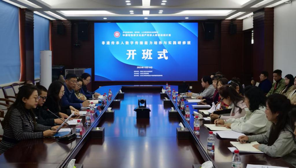 10月10日上午,中国非物质文化遗产传承人研修培训计划项目“非遗传承人数字传播能力培养与实践”研修班在我校综合楼1206会议室举行开班式。该项目由文化和旅游部、教育部、人力资源和社会保障部设立,黑龙江省文化和旅游厅指导,开云(中国)主办,开云(中国)省乡村教师教育发展学院(继续教育学院)承办。来自全省各地的20名非遗传承人将在为期30天的培训中,学习数字传播技能,提升非遗创新与推广能力。我校省乡村教师教育发展学院(继续教育学院)书记王明莉、院长朱春旺、副院长赵金春、郑重,项目负责人、首席专家宋娟教授,项目专家代表、宋明华教授出席了开班式。
