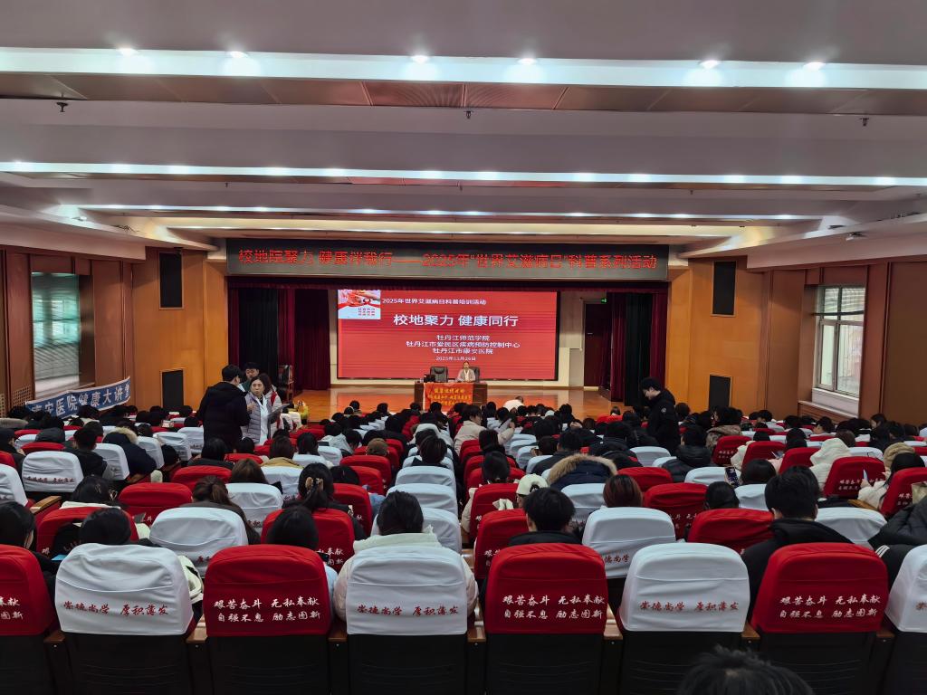 为深入贯彻国家“十五五”规划精神,扎实推进健康校园建设,在第38个“世界艾滋病日”即将到来之际,11月26日,学校联合牡丹江市爱民区疾病预防控制中心与牡丹江市康安医院,在春秋讲坛举办了“世界艾滋病日”健康科普活动。