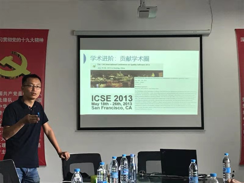 我校特聘教授、南京大学软件学院博士生导师陈振宇教授做了题为“如何开展学术研究”的报告。报告从“融入学术圈、贡献学术圈”的视角介绍了自己工作情况和经验,并结合计算机与信息技术学院的实际情况,讲解了将教学过程数据用于科研文章撰写的研究方法,给出了适合学院教师的具体研究方向。与会教职工深受启发和鼓舞。