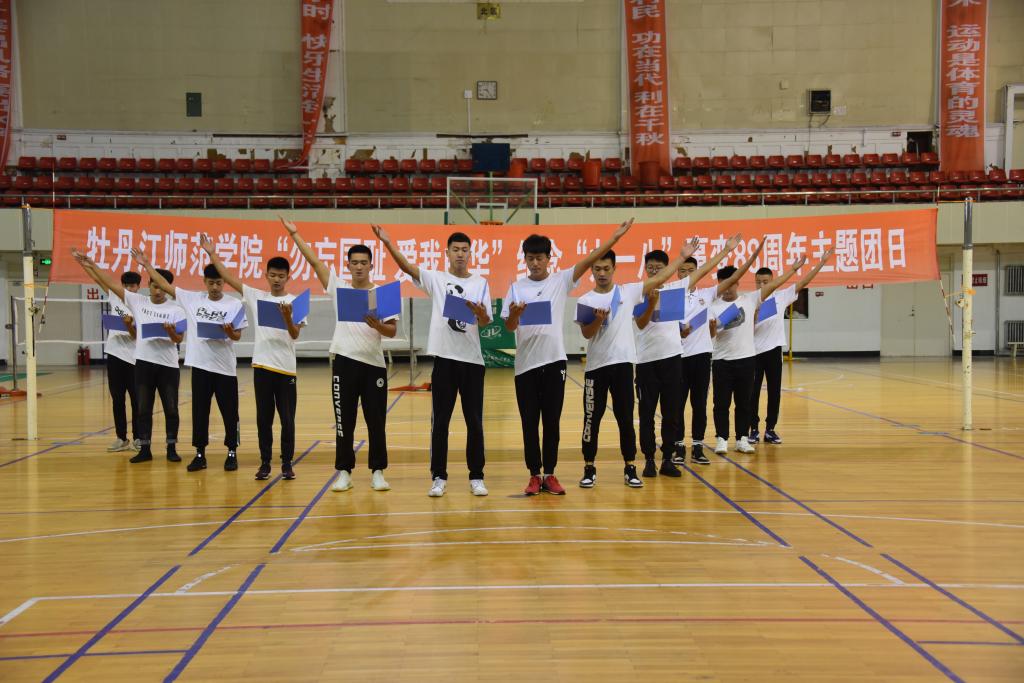 9月8日上午,校团委在体育馆举办“勿忘国耻 爱我中华”纪念“九·一八”事变88周年主题团日活动。本次团日活动由体育科学学院2018级体育教育班团支部和应用英语学院2018级商务3班团支部共同展演。校团委副书记陈晓东、校团委宣传部部长赵薇、第七期青马工程培训班学员、团员青年代表共600余人参加了此次主题团日活动。活动由“青马工程”培训班班主任、应用英语学院团总支副书记邹璐主持。