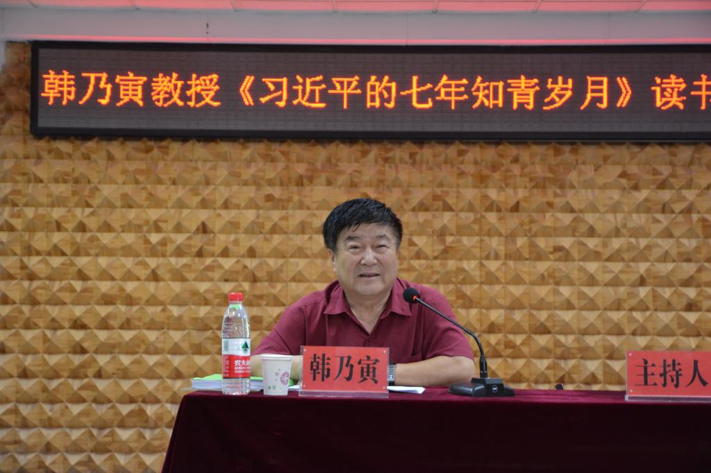 报告会中,韩乃寅教授结合自身知青生活经历,用一个个故事娓娓道来习近平总书记作为知青时的理想追求和植根爱国为民的家国情怀。韩教授在报告中教育引导青年大学生要学习青年习近平坚强的革命意志、为民情怀、务实的钉子精神、担当意识、博览群书的精神。韩教授的报告深入浅出、内涵深刻,用朴实的语言道出了书中的精髓,也为师生深刻理解书中所诠释的习近平总书记治国理政思想和实践的“根”“源”、深刻理解书中所生动昭示的青年习近平成长之路彰显的磅礴力量提供了基石。