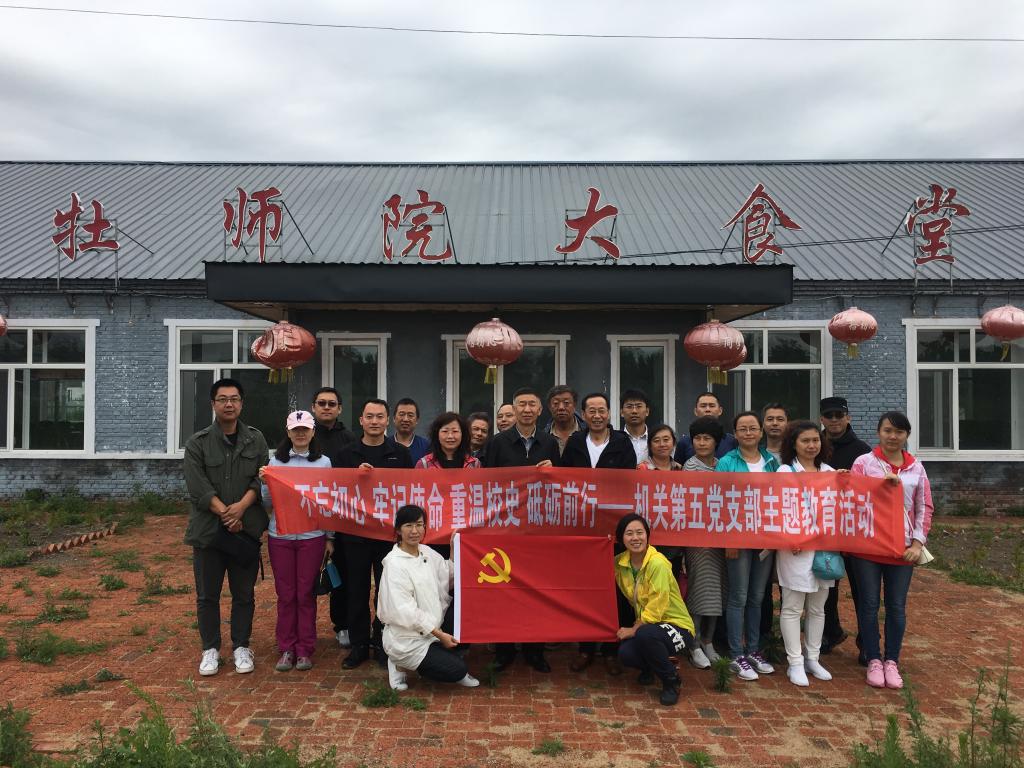 7月7日, 机关第五党支部组织全体党员赴东京城校区老校址开展重温校史,铭记“大荒地”精神主题教育活动。校党委副书记杨春文、机关党委书记周广发应邀参加了活动。活动由支部书记李志超主持。