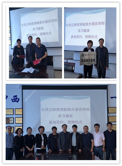 仪式上,西方语言学院院长赵祥凤教授详细介绍了学院近几年学生的实习和就业情况;宁安小新星英语学校校长郑淑芹代表签约单位讲话;我校创业就业指导中心主任李强代表学校为西方语言学院实习就业基地好未来北京励步英语授牌;创业就业指导中心主任李强、教务处副处长关洪海代表学校与宁安小新星英语学校校长郑淑芹、温州多元联盟培训学校校长李光签订了实习就业基地协议。