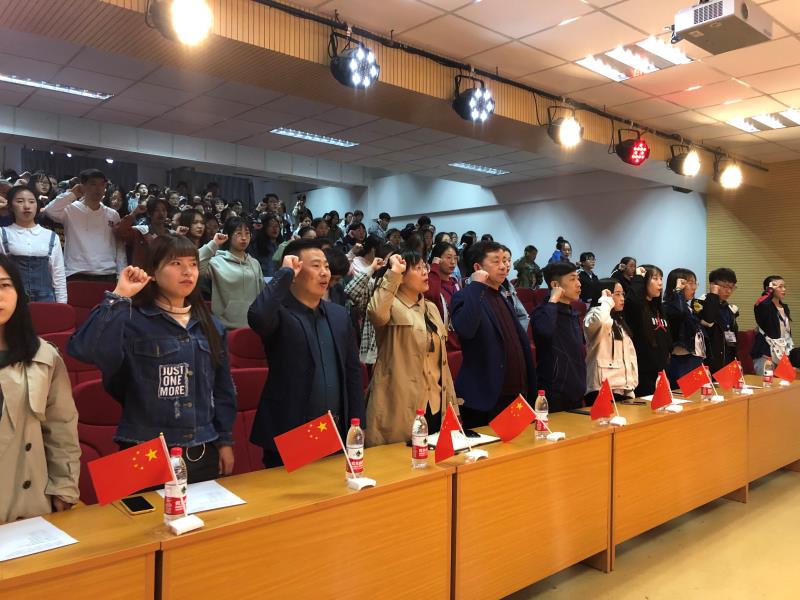 活动在宣誓团铿锵有力的入团誓词中拉开帷幕。舞蹈《赞赞新时代》展现了团员青年奋发向上的澎湃激情;配乐诗朗诵《青春赞歌》引领大学生用青春的力量追梦圆梦;歌曲《少年中国说》唱出了青年奋发图强做栋梁的心声;歌伴舞《红旗飘飘》表达了青年人对祖国的赤子之心。在全体人员合唱的团歌《光荣啊,中国共青团》中,主题团日活动画上了圆满的句点。