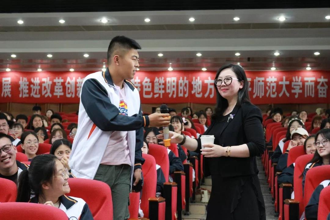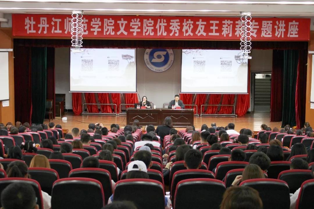讲座分为“我与牡师院的那些事儿”、“我有故事,你的酒在哪”、“性格是否真的决定命运”、“世界很大,你应该去看看”四个部分。校友王莉莉以自己的亲身经历为学弟学妹们讲述了她的人生感悟,她语言风趣,贴近学生心理与生活,在观众席与同学们进行现场互动,引发讲座的又一热潮。她说:“用爱用心做一位教师,教书育人,学会跟孩子们交流,更要让孩子们学到更多的知识。要有一双打开心窗的手,要有一颗创新的心。”并告诫在场学生,青春是奋斗的,人生是拼搏的,让青春在不懈的奋斗中闪光。