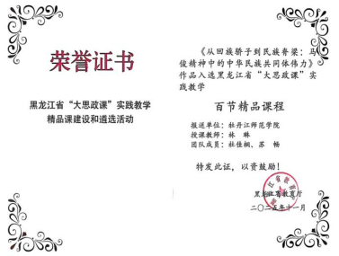 近日,黑龙江省教育厅主办的“大思政课”实践教学精品课建设与遴选活动结果公布,我校马克思主义学院选送的两门课程成功入选“黑龙江省‘大思政课’实践教学百节精品课程”,同时我校获批黑龙江省“大思政课”实践教学协作共同体高校。