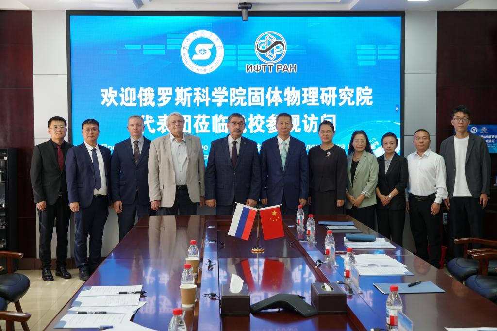 9月9日—12日,俄罗斯科学院固体物理研究院院长列夫琴科·亚历山大·阿列克谢耶维奇院士率代表团访问我校。两校围绕功能材料领域的科研合作开展了系列交流,推动中俄国际“功能材料”联合实验室建设落地见效。我校与俄罗斯科学院固体物理研究院在综合楼1203会议室举行会谈。俄罗斯科学院固体物理研究院院长列夫琴科·亚历山大·阿列克谢耶维奇院士、克韦节勒·维塔利·弗拉基米罗维奇院士、副院长杰列申科·阿列克谢·尼古拉耶维奇教授;开云(中国)院长、党委副书记丛喜权,副院长、党委常委张艳霞,相关职能部门负责人和物理与电子工程学院师生参加活动。