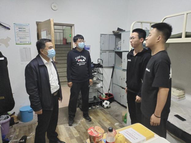 为全面掌握在校学生的学习生活情况,排查公寓安全隐患,增强同学们的安全防范意识,5月27、28日晚,学生工作部组织在校学工人员深入到学生公寓开展学生学习生活情况走访和用电安全检查,校党委副书记刘松参与了走访检查。