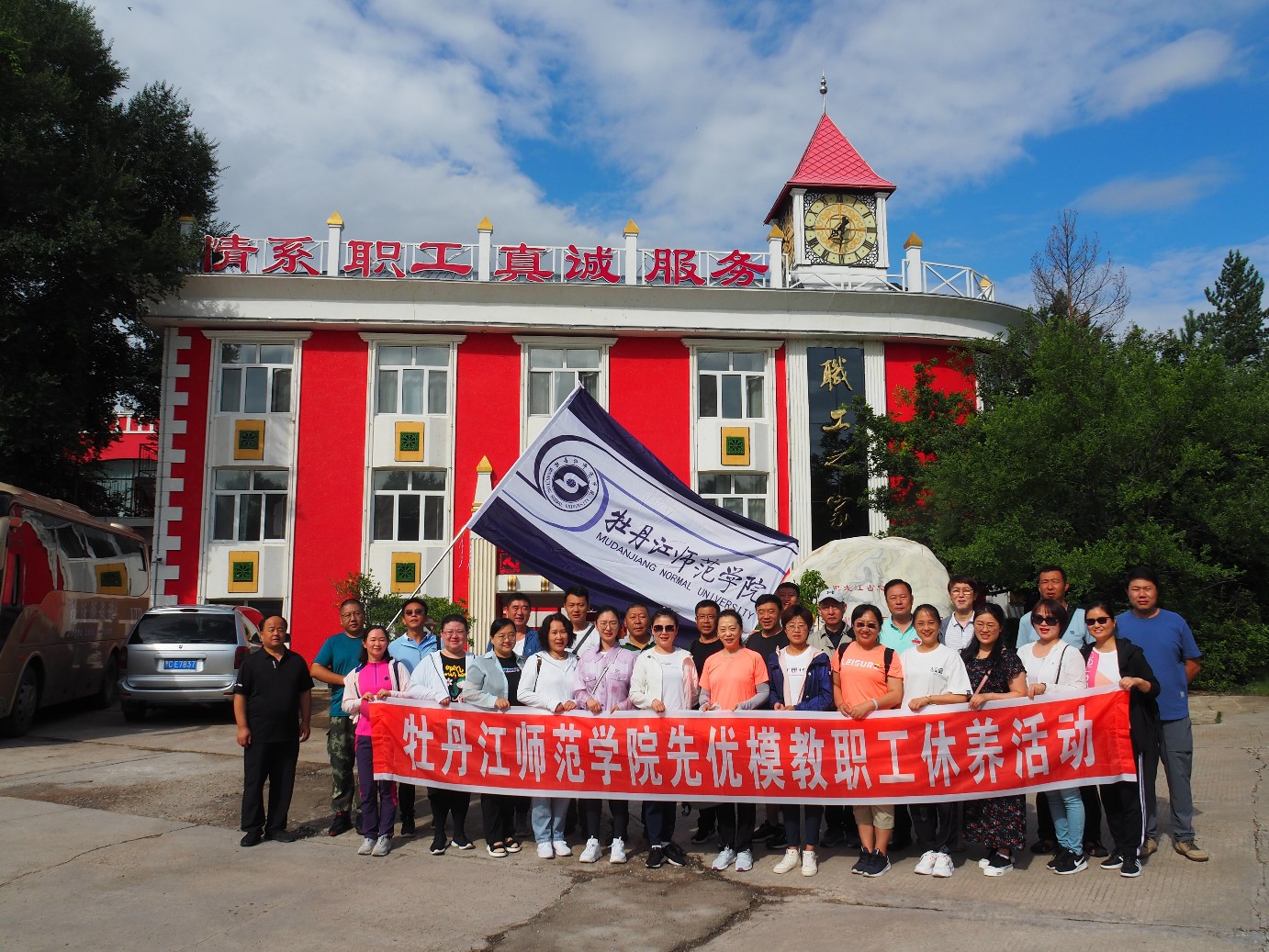 按照黑龙江省教科文卫体工会《关于组织开展2022年全省教科文卫体系统职工(劳模)疗休养活动的通知》精神,近日,校工会组织学校“先优模” 赴省总工会镜泊湖职工疗养院开展疗休养活动。参加本次疗休养活动的25名教职工是由各基层工会选派荣获各级各类荣誉称号,长期在教学、科研、管理和后勤服务一线工作的教职工,其中一线教师代表占80%以上,高职称高学历人员达50%以上。