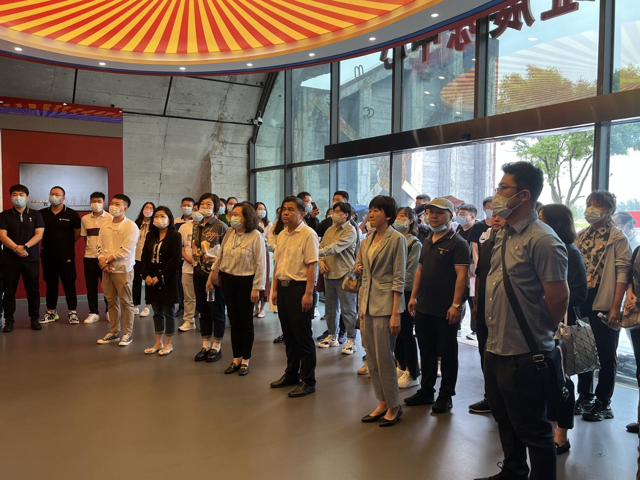 参观结束后,全体人员在2013年黑龙江省高校辅导员年度人物、物理与电子工程学院党委副书记朱柏学的带领下重温入党誓词。