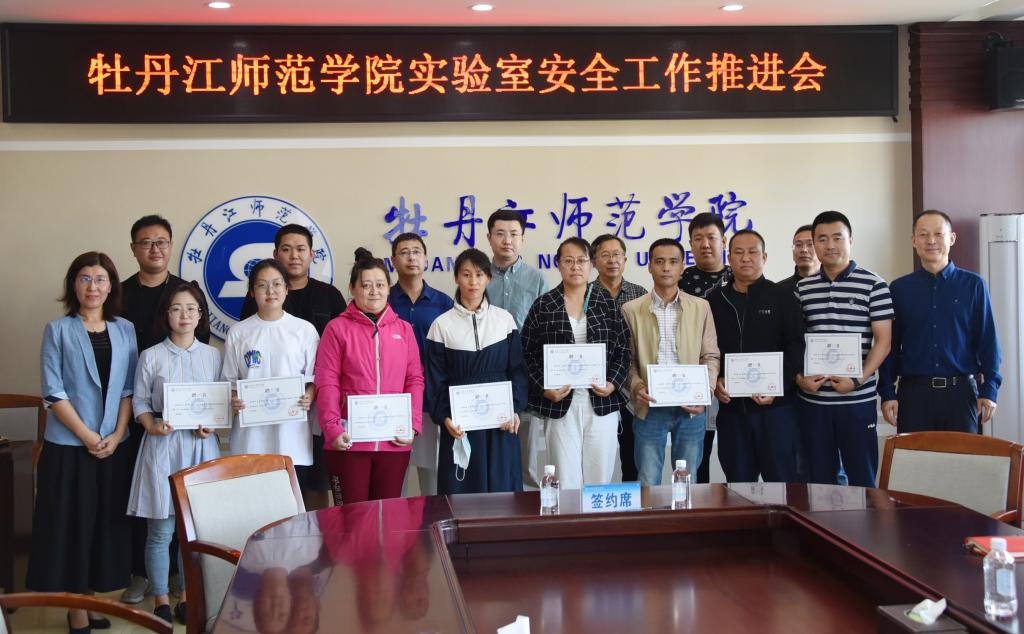 会上,院长、党委副书记李春江分别与各二级学院负责人签订了实验室安全工作责任状;李春江院长、程爽副院长为我校新聘任的16名实验室安全员颁发了聘书。