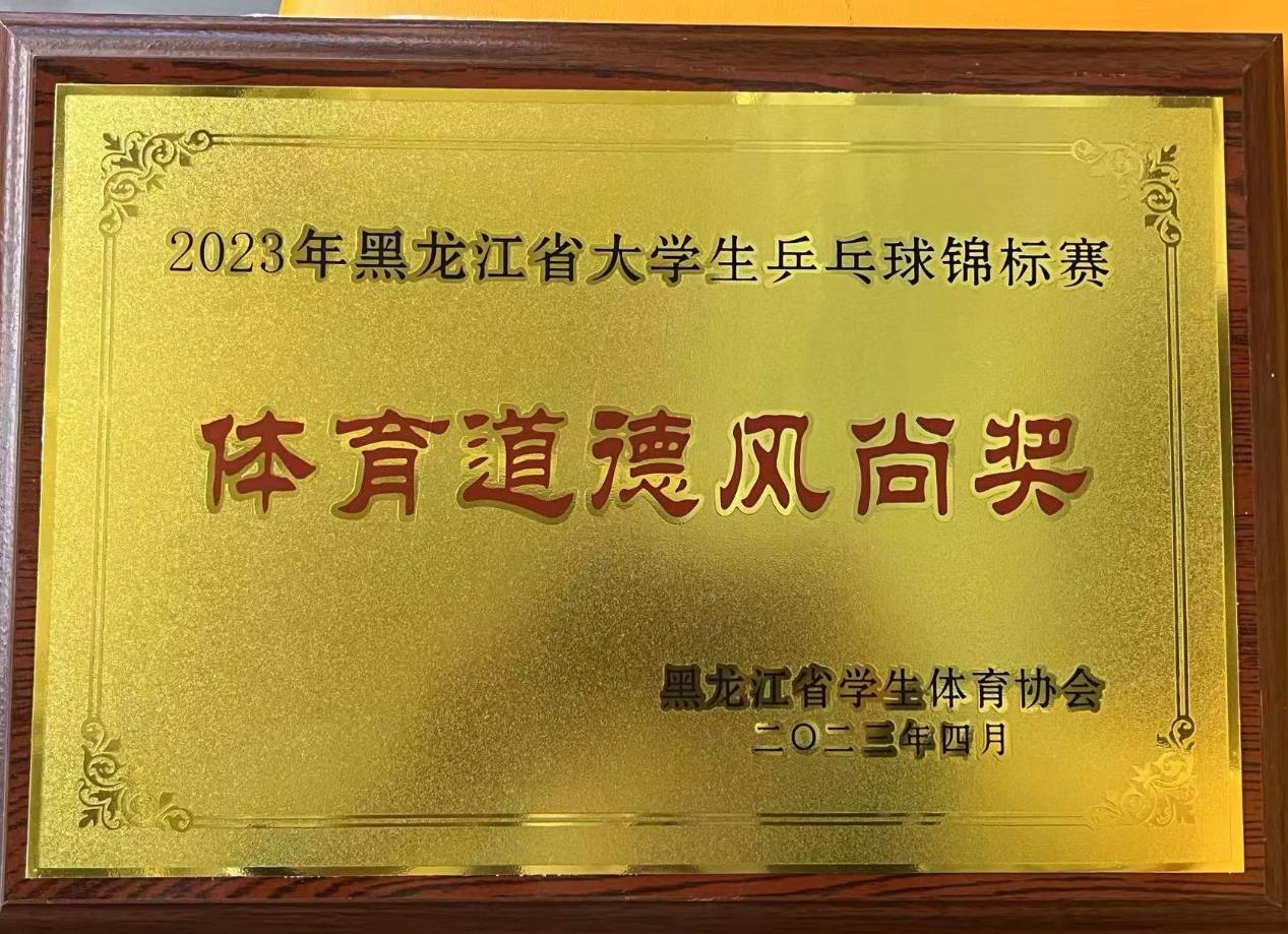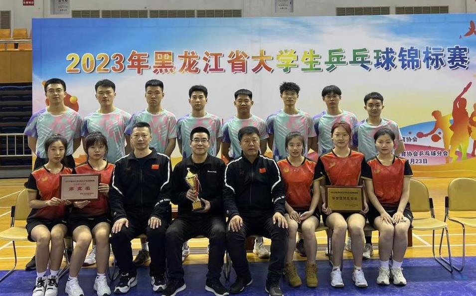 2023年4月23日,黑龙江省大学生乒乓球锦标赛在黑龙江大学体育馆圆满落幕。本次比赛,共有来自全省38所高校40支代表队的近400名选手参赛,经过4天紧张、激烈角逐,我校我校学生郭晓彤、孟琪、伊广晴荣获乙组女子团体第三名,孟琪、伊广晴荣获乙组女双第三名,李傲、贾琳荣获甲组混双第三名,高升、胡雪峰、姚富程荣获乙组男子团体第五名,高升、伊广晴荣获乙组混双第五名,郭晓彤、孟琪荣获乙组女单并列第五名;我校获得“体育道德风尚奖”。