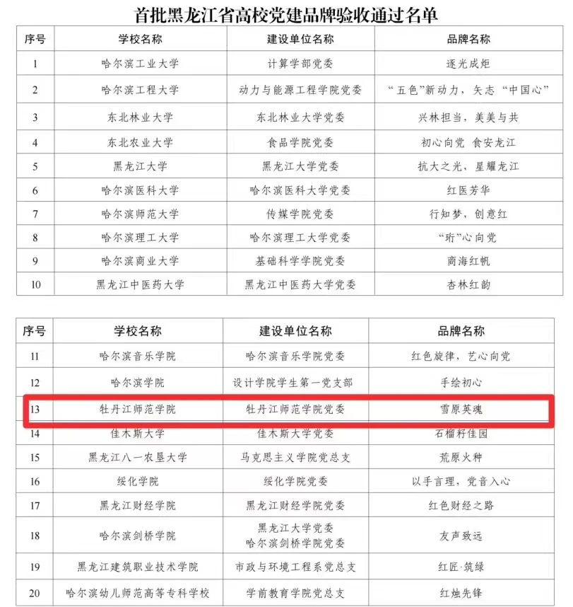 学校党委“雪原英魂”党建品牌通过首批黑龙江省高校党建品牌验收